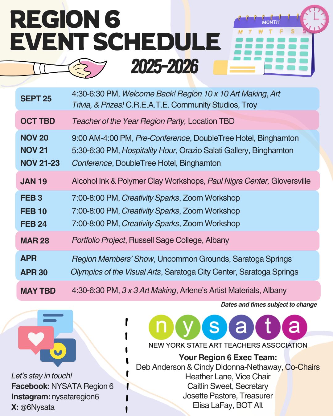 Region 6 Leadership Co-Chairs/BOT Reps: Debra Anderson & Cynthia DiDonna-Nethaway Vice-Chair: Heather Lane Secretary: Caitlin Sweet Treasurer: Josette Pastore Board of Trustees Alternate Representative: Elisa LaFay